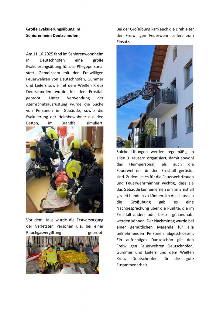 Am 11.10.2025 gab es im Seniorenwohnheim Peter Paul Schrott - Deutschnofen eine große Evakuierungsübung mit Drehleiter